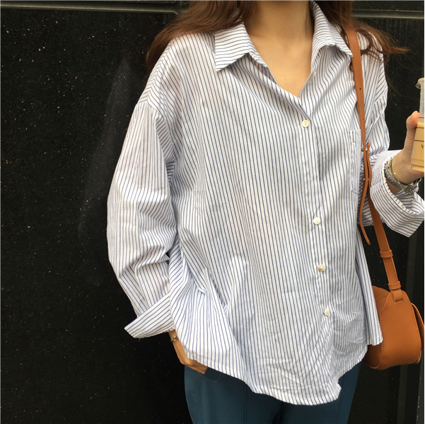 早秋女裝韓版簡約百搭寬松學生翻領排扣襯衫